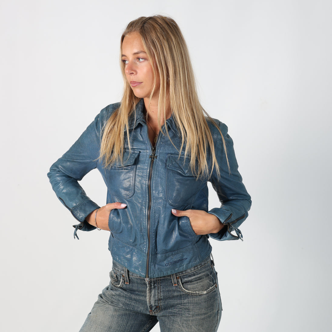 Blue 90s GUESS Jeans Leather Jacket (S)