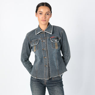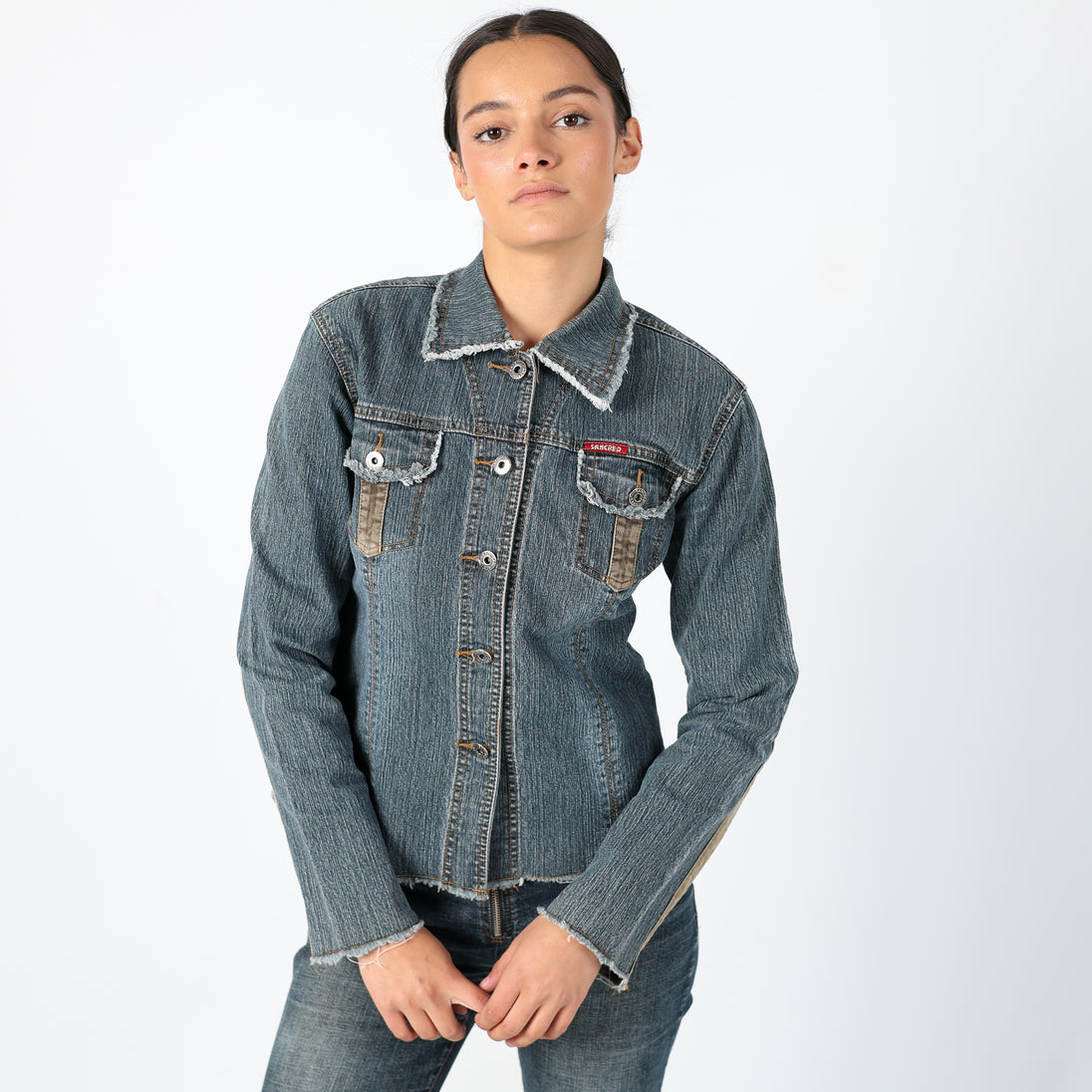 Blue y2ks Sancred Denim Jacket Pocket Detailing, Unique y2k (M)