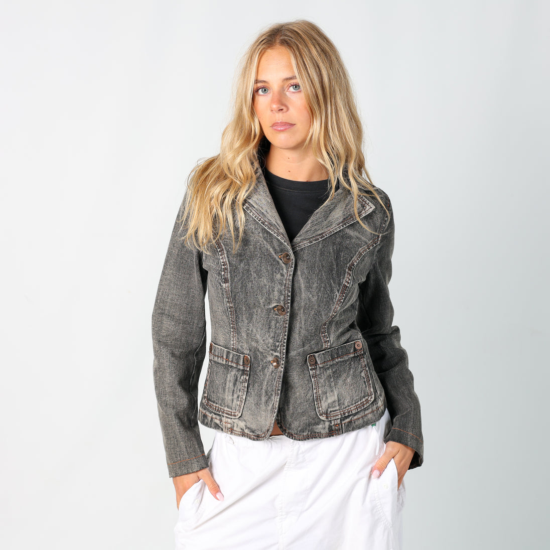Charcoal Grey 90s Unbranded Denim Jacket (M)