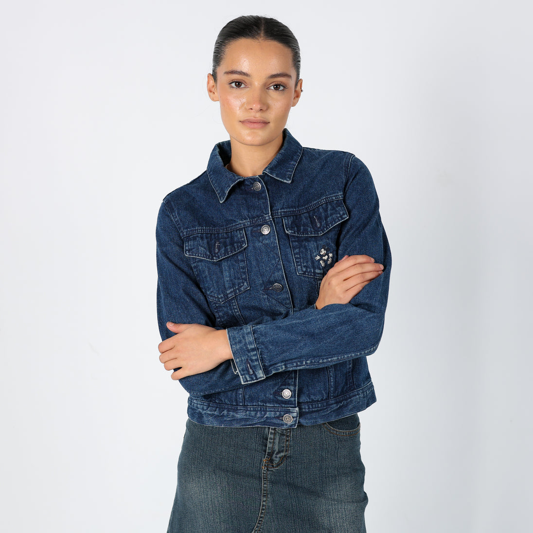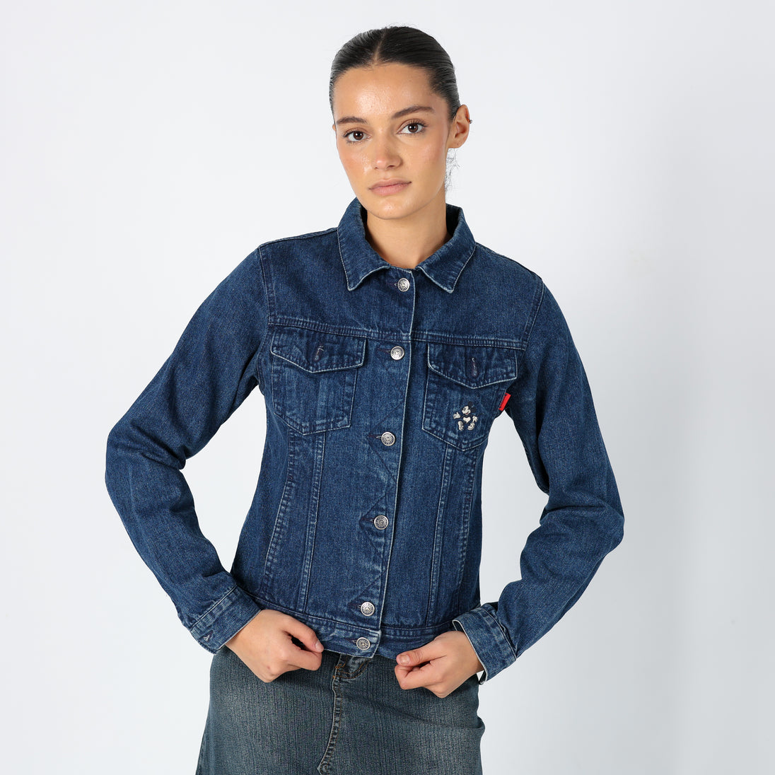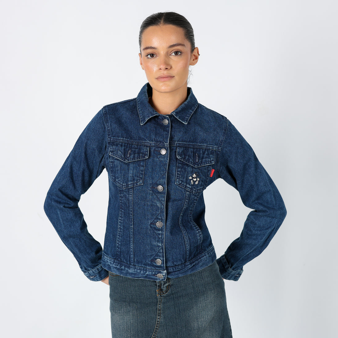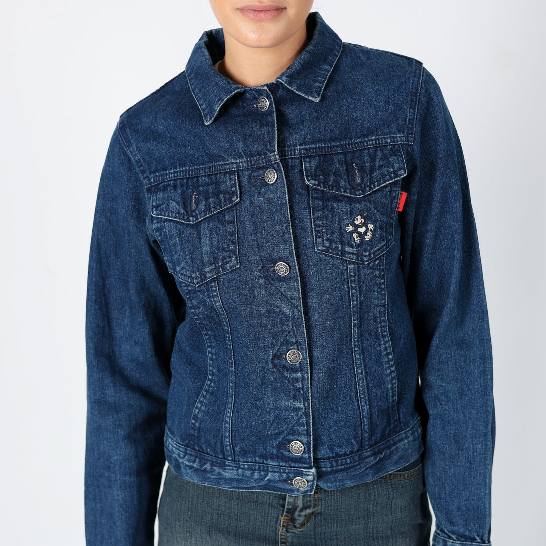 Navy Blue 90s Disney Denim Jacket Mickey Mouse Detail (S)