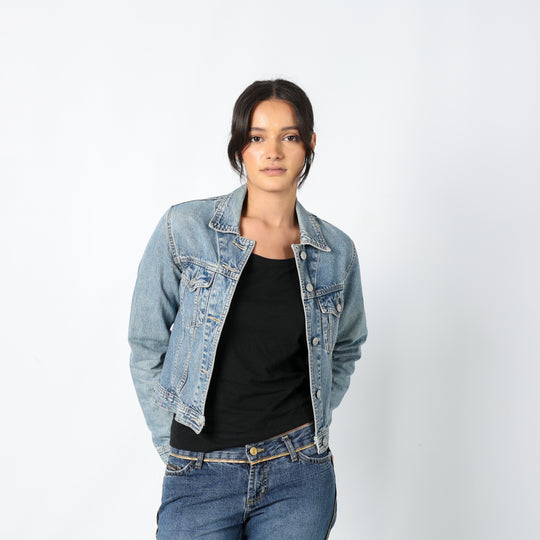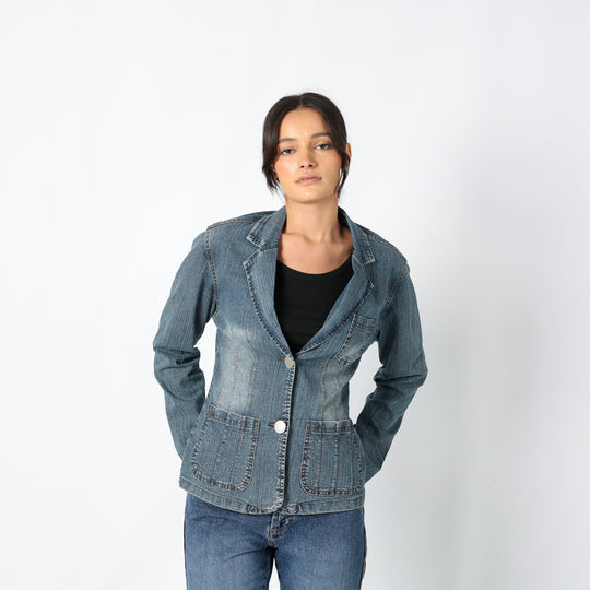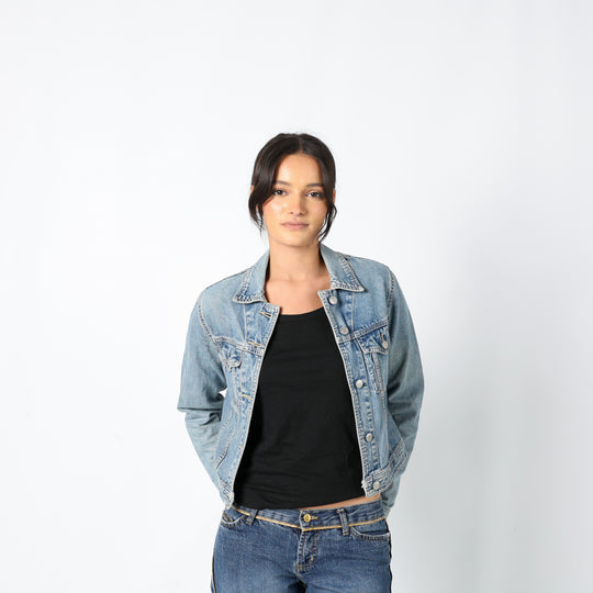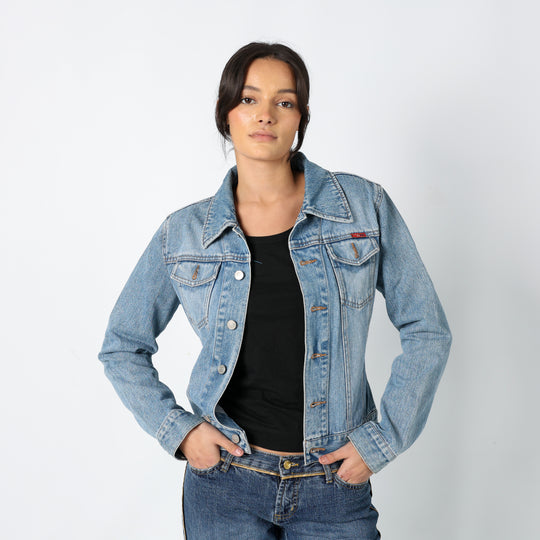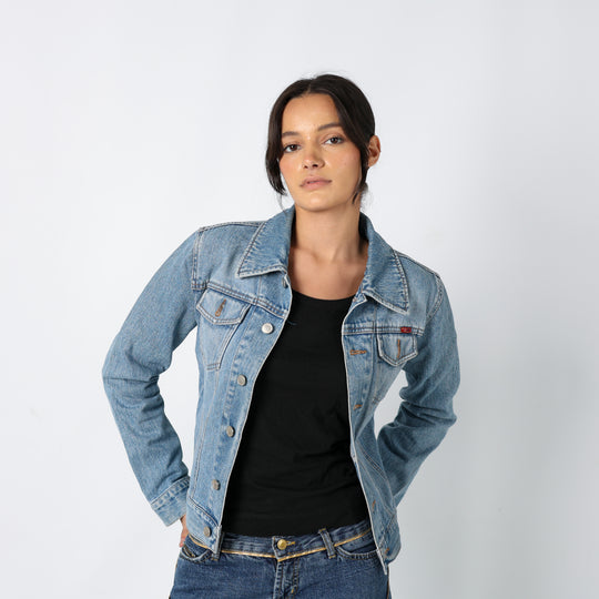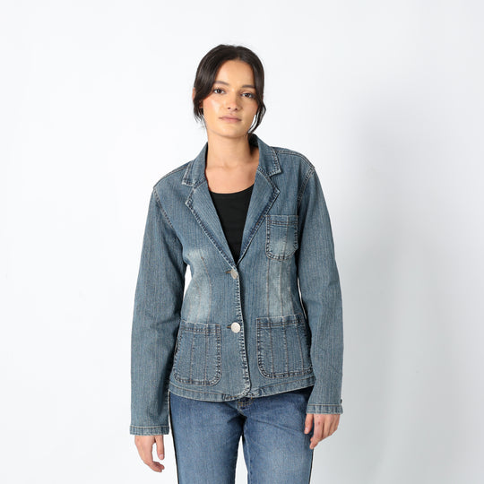 Blue 90s List Woman Denim Jacket Statement Button (M)