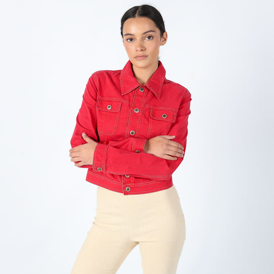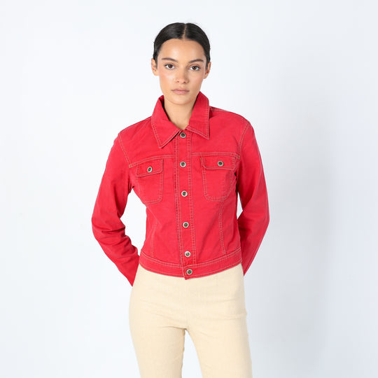 Red y2ks Gigli Woven Jacket Contrast Stitch, Chic Y2k (8)