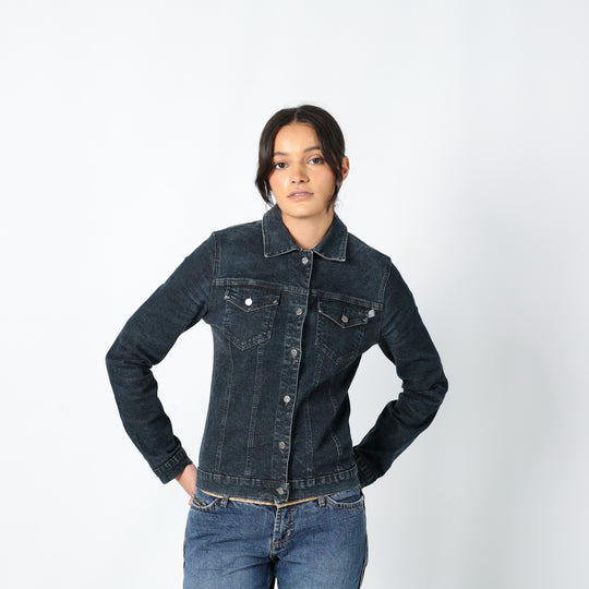 Navy Blue 90s Lola&Liza Denim Jacket Staple 90s Jacket, Euro Summer (M)