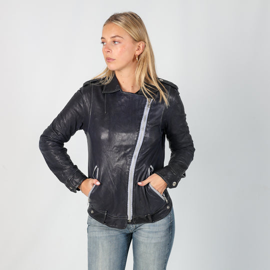 Navy Blue y2ks Privee Leather Jacket (M)