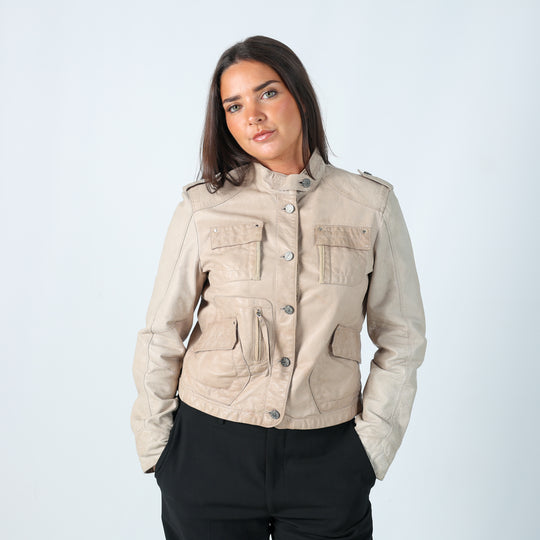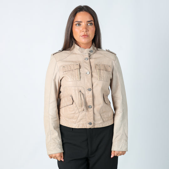 Black 90s Pakerson Leather Jacket Contrast Stitch (M)