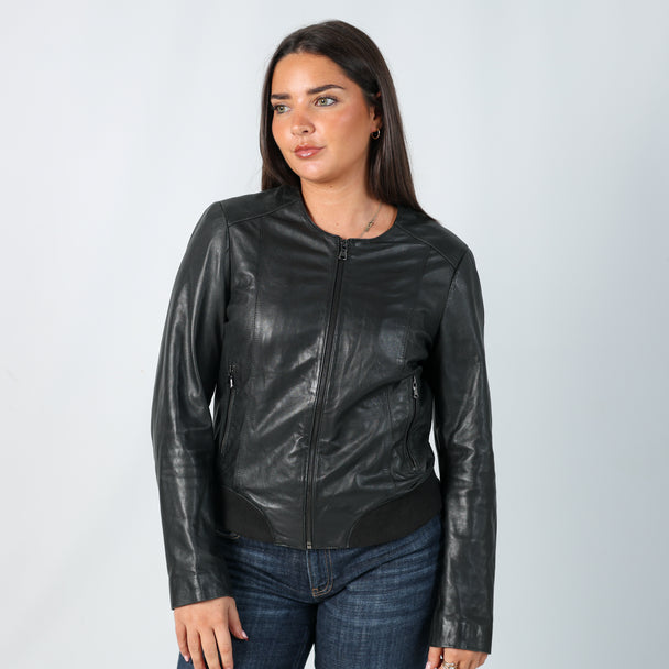 Charcoal Grey 90s Stefanel Leather Jacket Grunge, Y2k Jacket, Detaled collar (S)