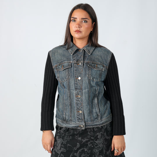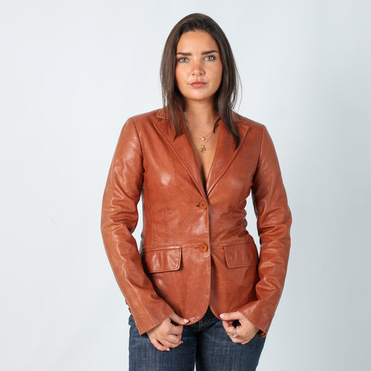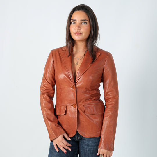 Brown 90s NEEDYOU Leather Jacket Contrast Stitch, Unique Jacket (M)