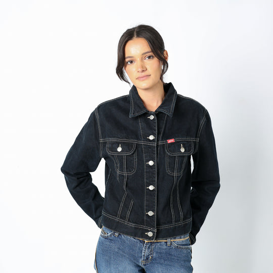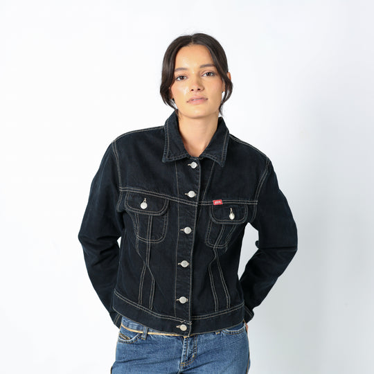 Navy Blue 90s Miss Sixty Denim Jacket Contrast Stitch (M)
