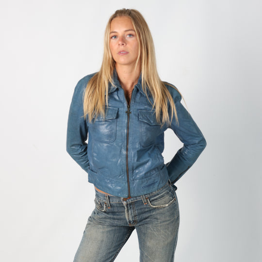 Blue 90s GUESS Jeans Leather Jacket (S)