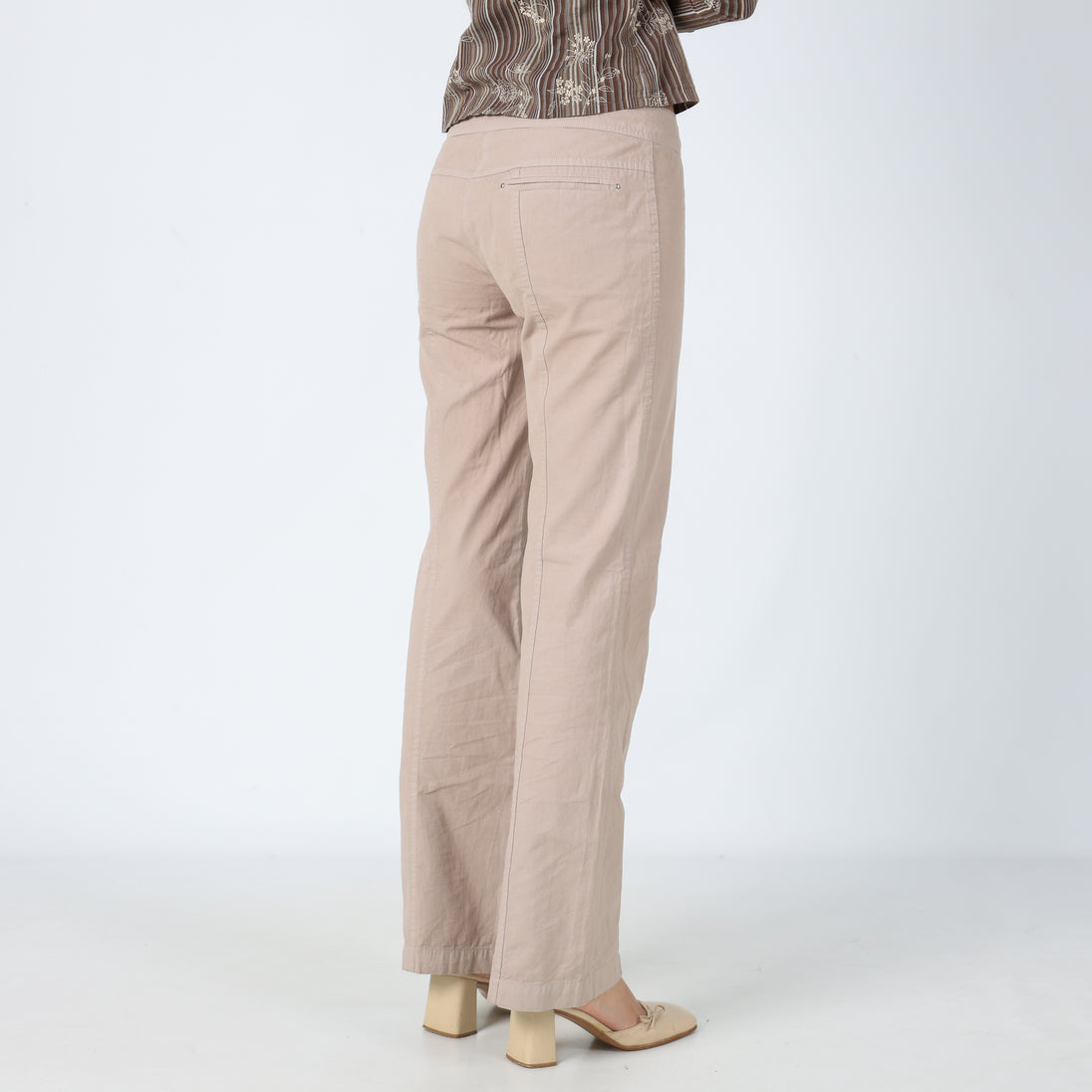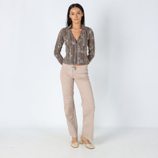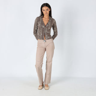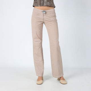 Beige y2ks Cop Copine Woven Trousers Statement Button Unique Chic (8)