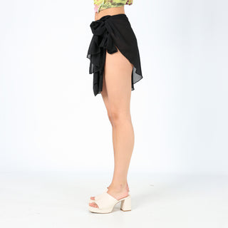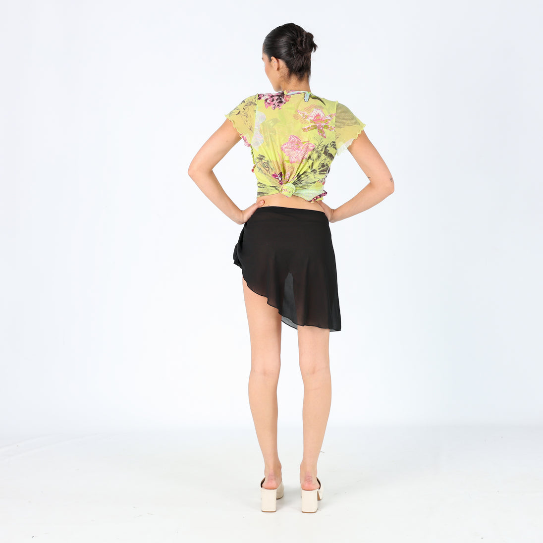 Black 90s Unbranded Mesh Midi Skirt Sheer Serong Adjustable (One Size)