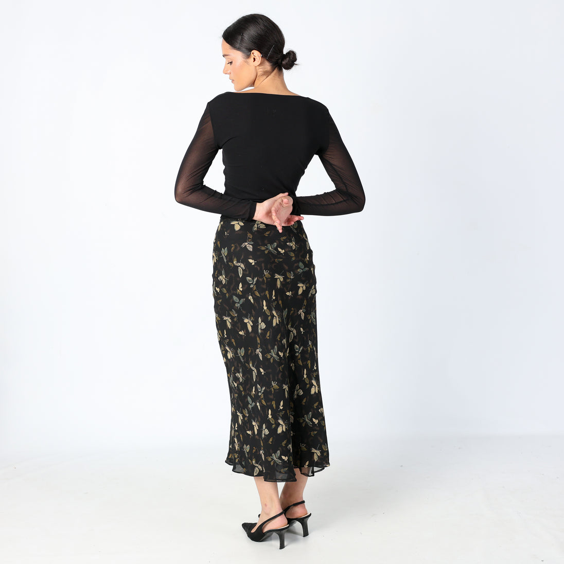 Black y2ks Calvin Klein Printed Maxi Skirt Floral Floaty Maxi (6)