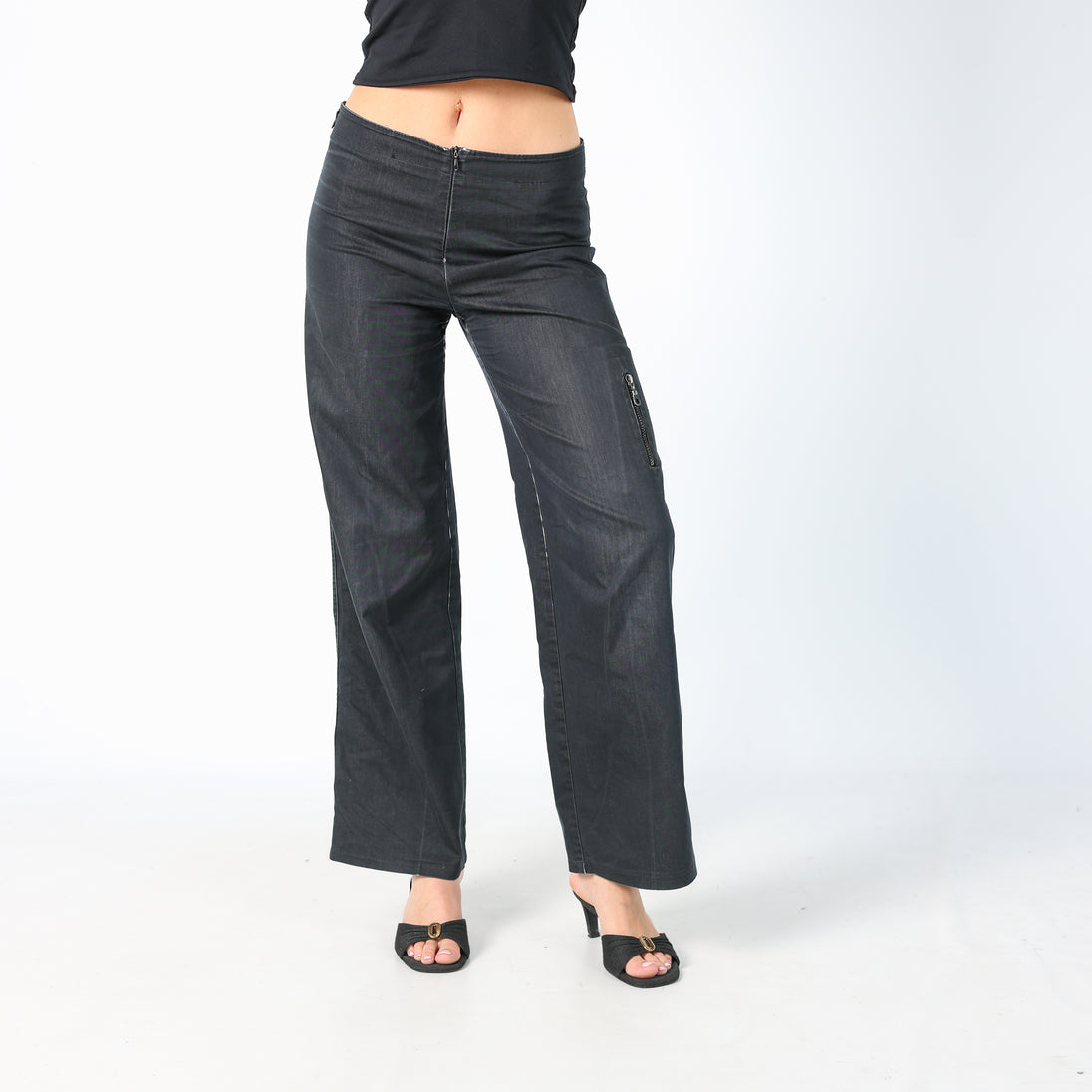 Black y2ks Cop Copine Woven Trousers Zip Detail (S)