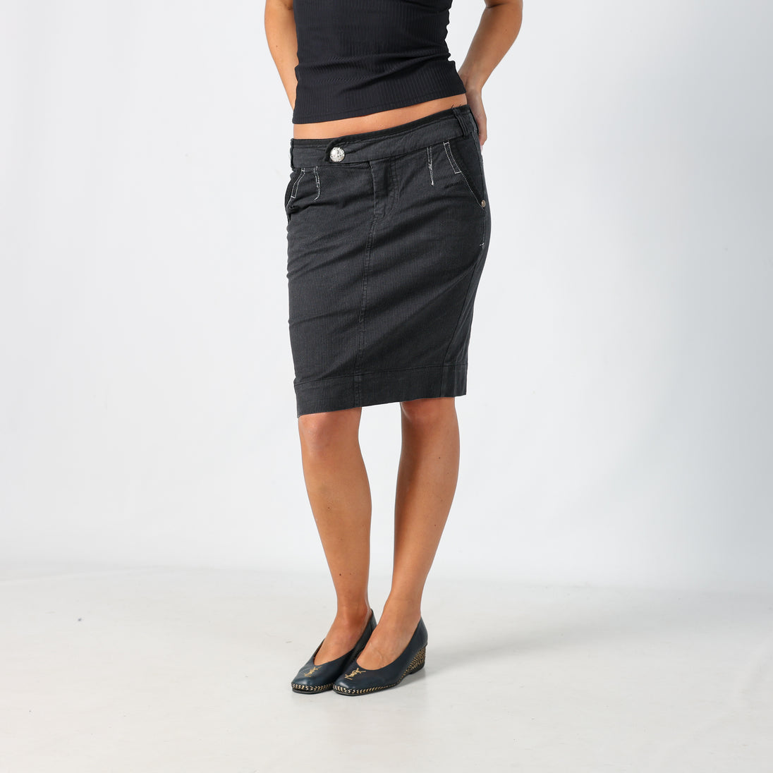 Black y2ks Unbranded Woven Midi Skirt Pinstripe (S)