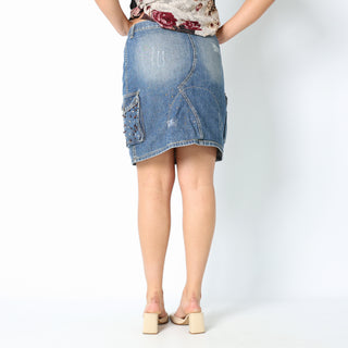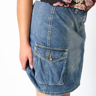 Blue 90s Esisto Denim Midi Skirt Gem Detail on Pockets (12)