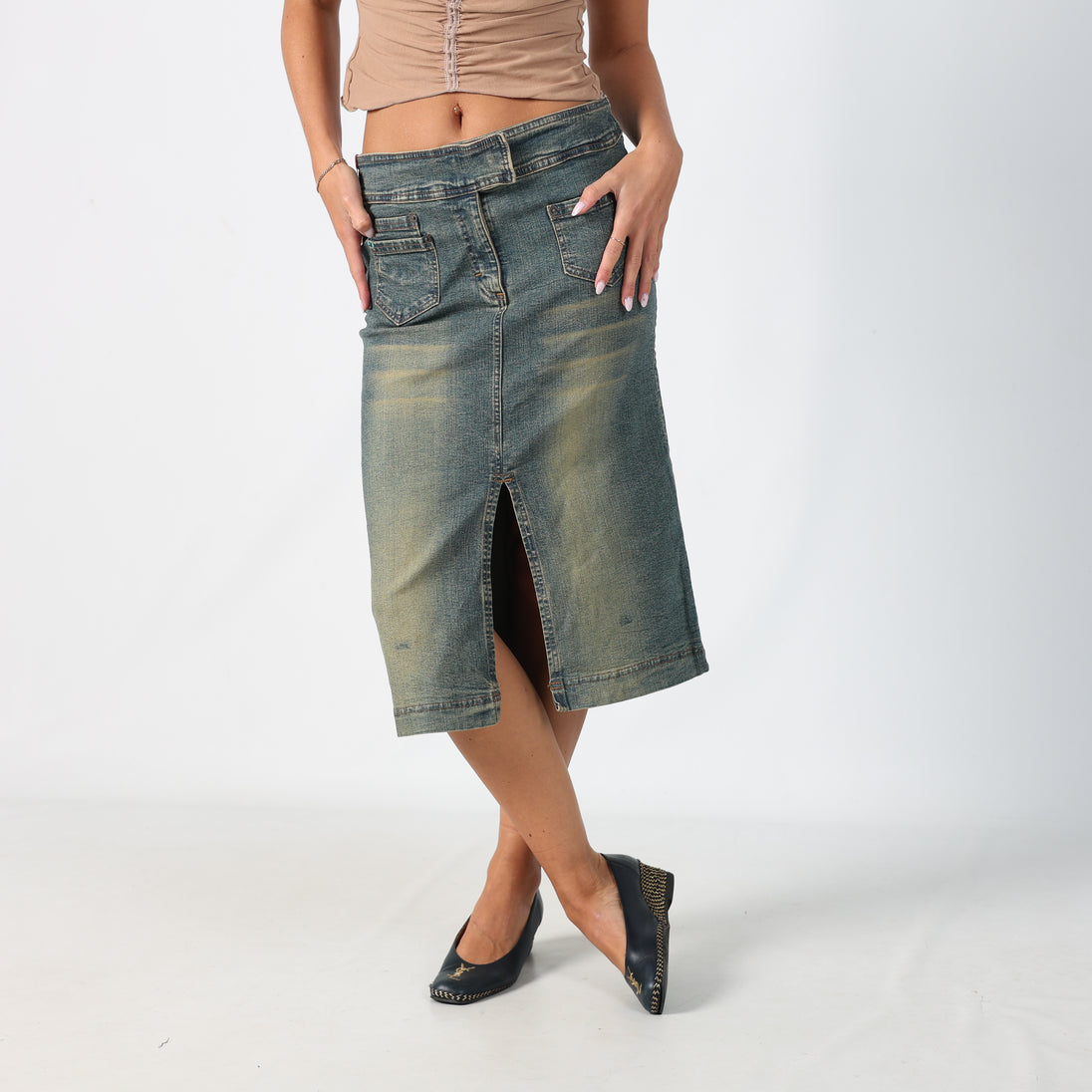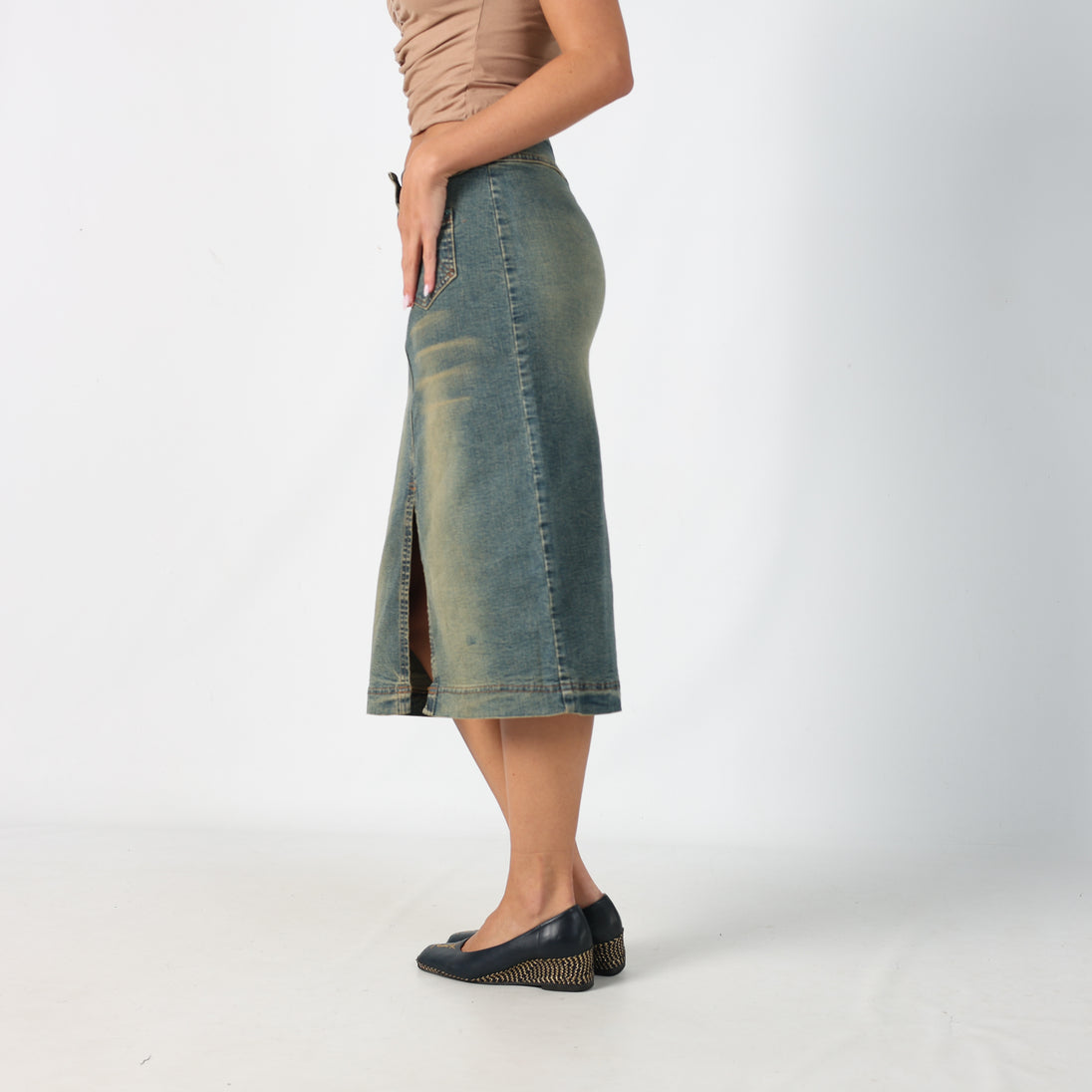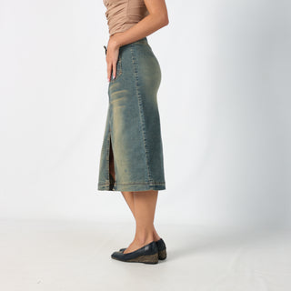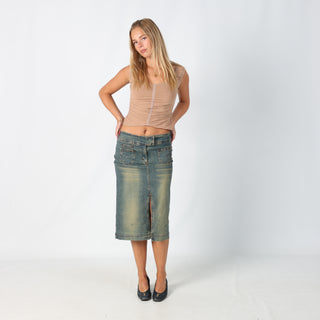 Blue y2ks New Jeans Denim Midi Skirt Split Hem (S)