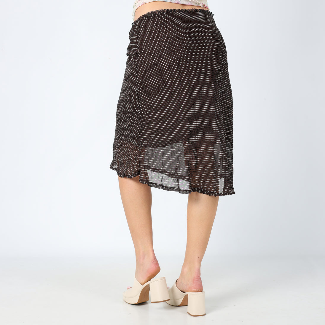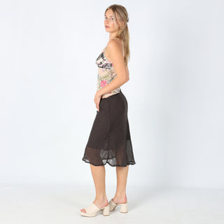 Brown 90s Habana Mesh Midi Skirt Chic Lace detailing Polkadot (8)