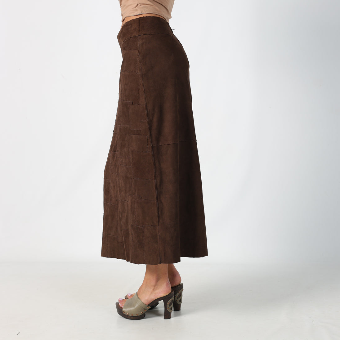 Brown 90s Marlboro Classics Woven Maxi Skirt Suede (S)