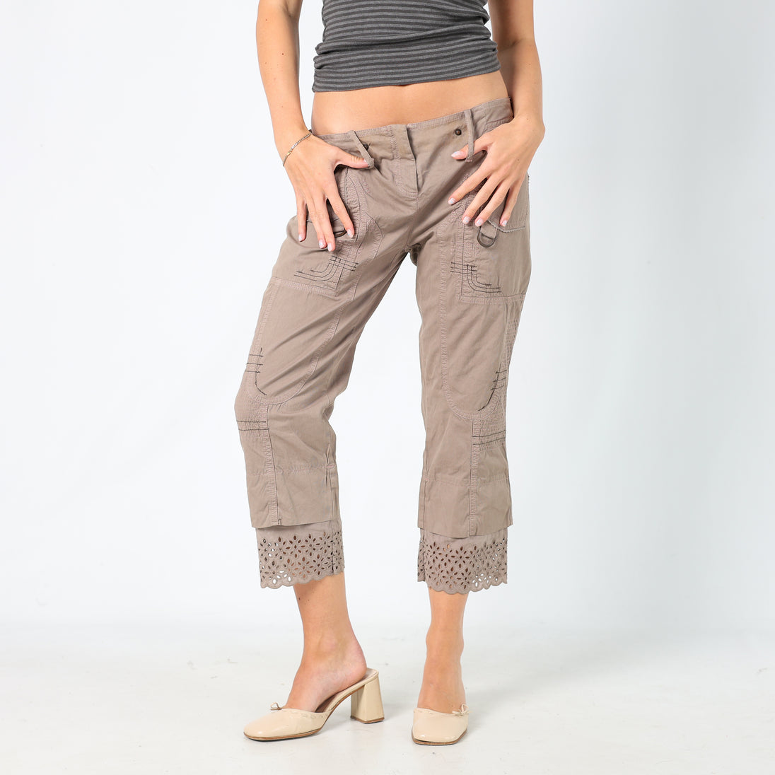 Brown y2ks PianuraStudio Capri Trouser Contrast Stitch (10)
