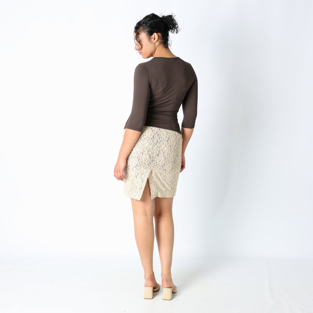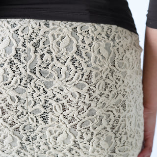 Cream 90s Moschino Woven Midi Skirt Pencil Shape Lace Detail (8)