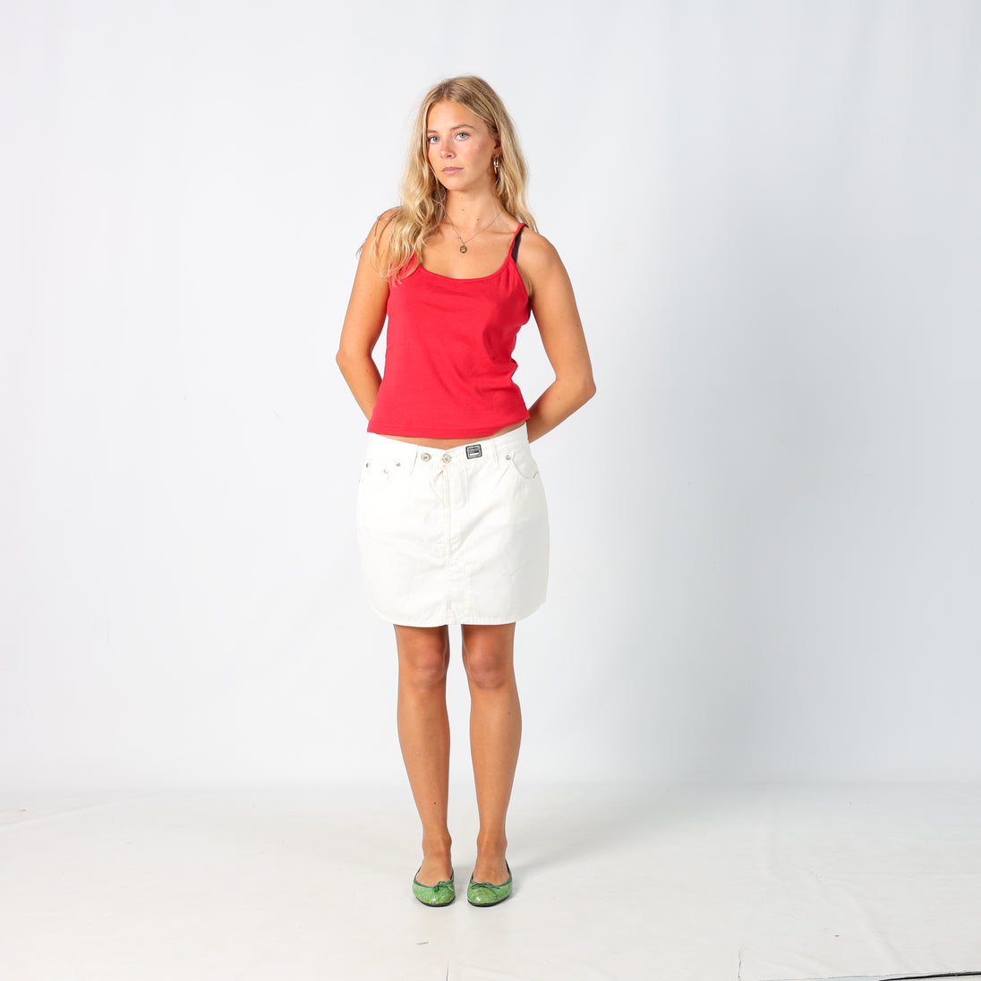 Cream 90s Versace Woven Mini Skirt (10)