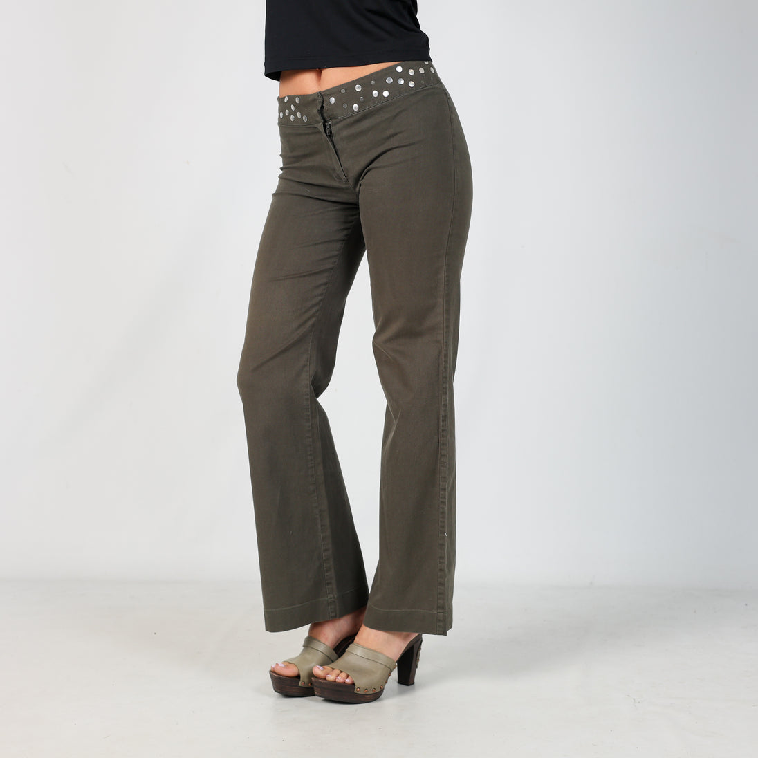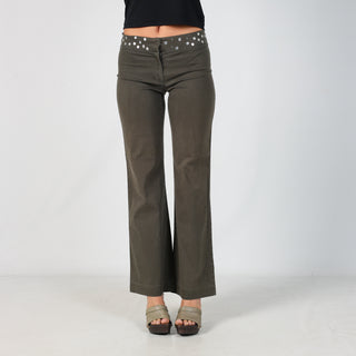 Dark Green y2ks eterea Woven Trousers Studded Waistband (S)