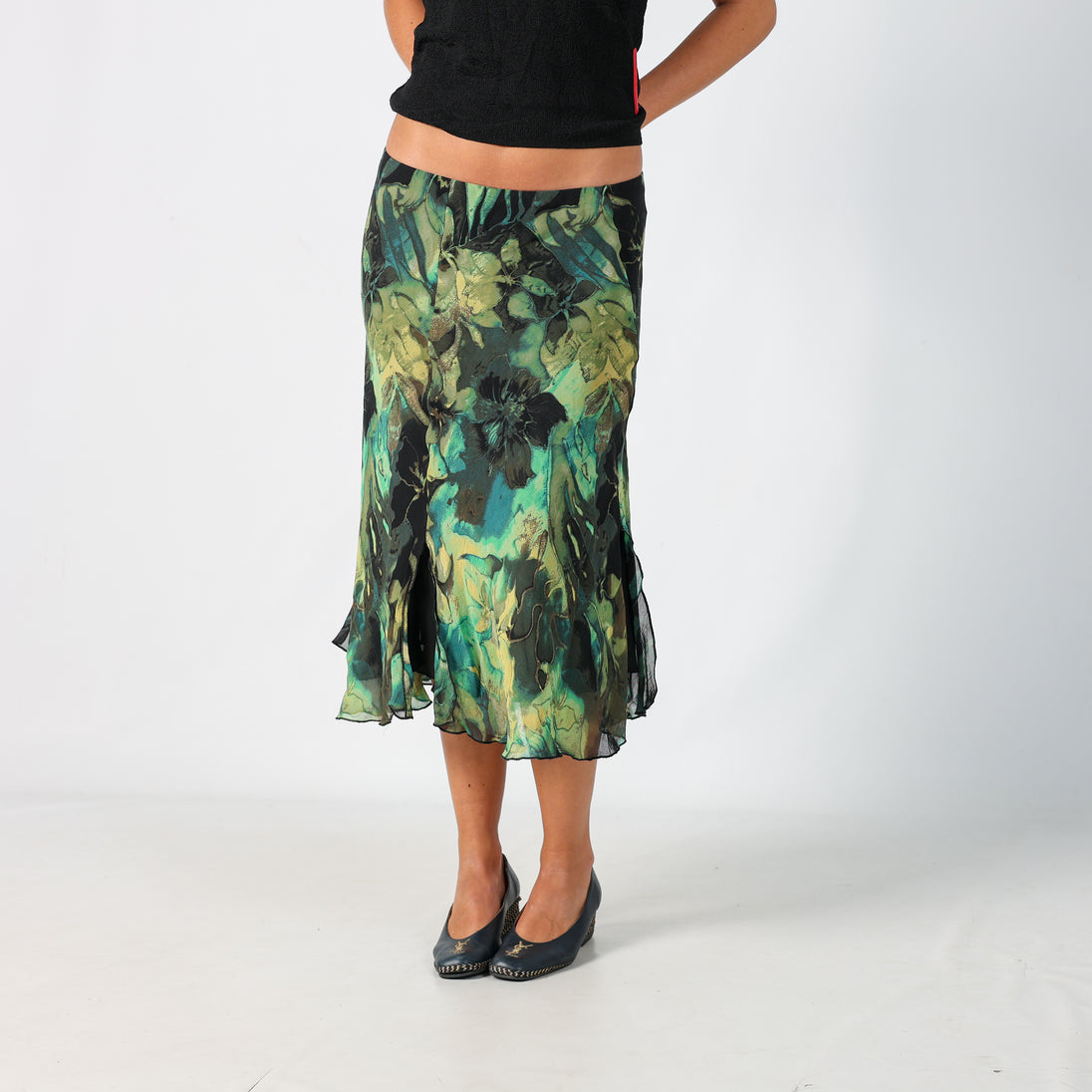 Dark Green y2ks Unbranded Woven Midi Skirt Floral (S)