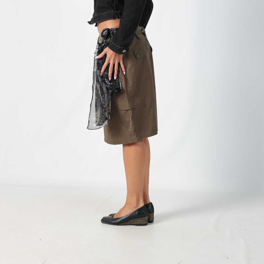 Khaki Green y2ks Redoute Woven Midi Skirt (M)