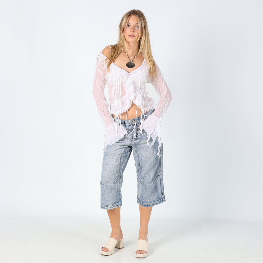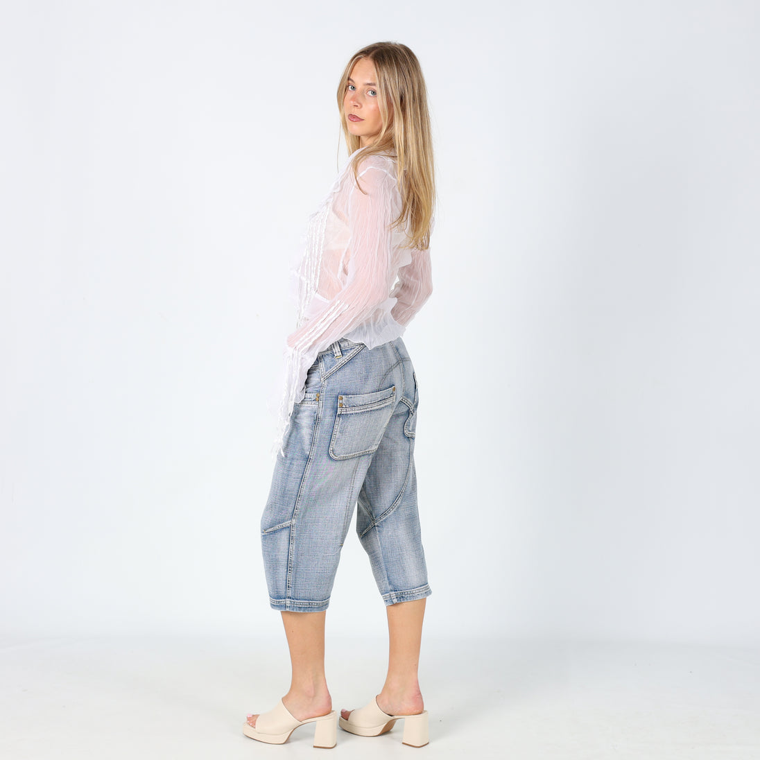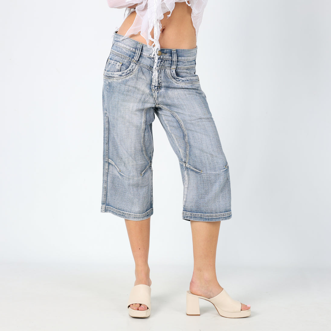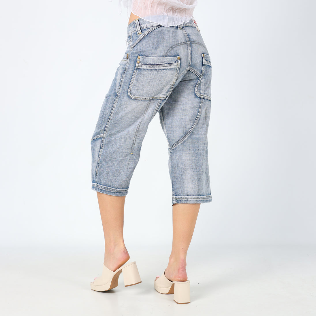 Light Blue 90s Automatic 3/4 Jeans Super Cool Unique Detailing (8)
