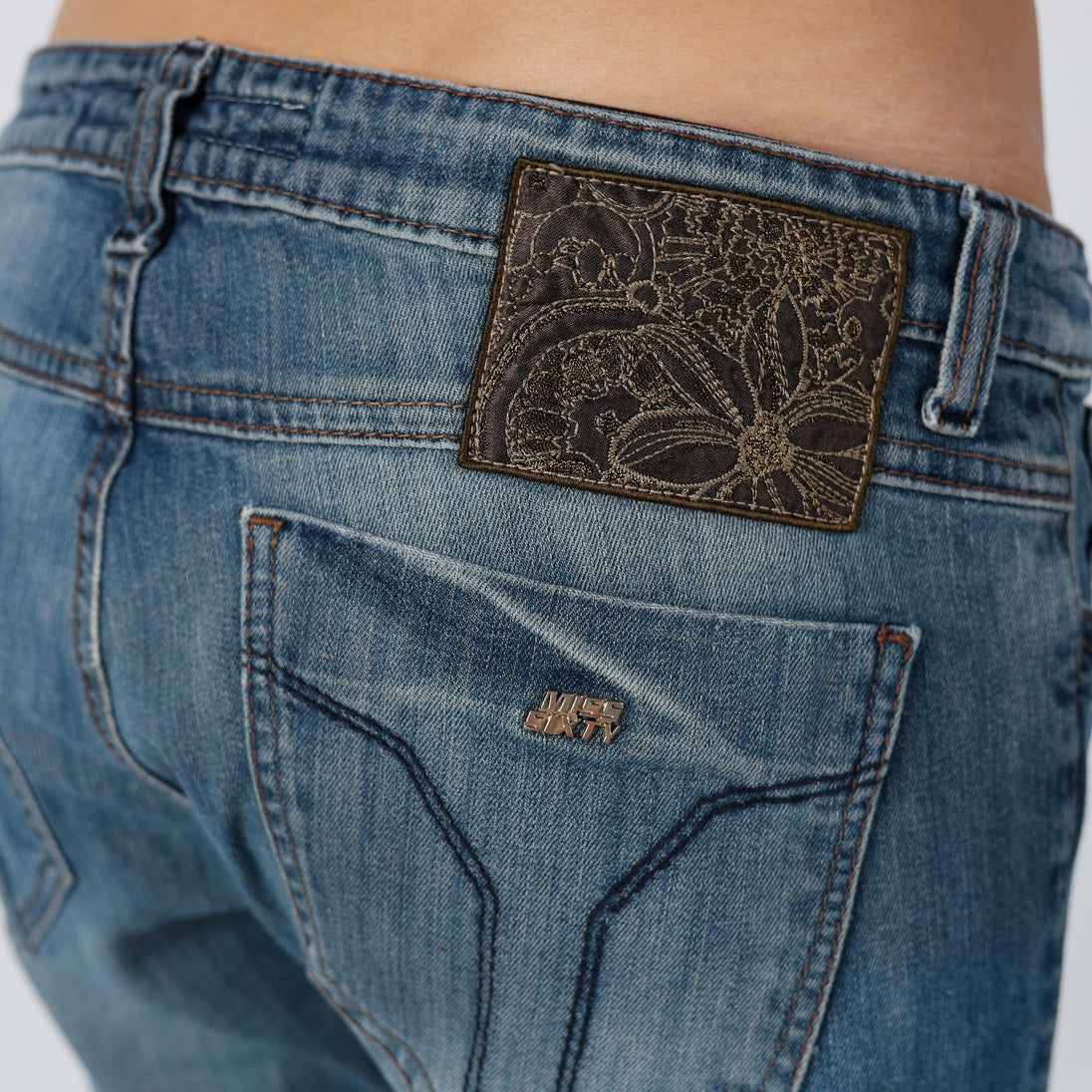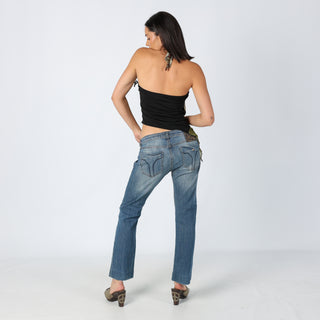 Light Blue 90s Miss Sixty Straight Jeans Ripped Casual Cool Badge Detailing Iconic Button (8)