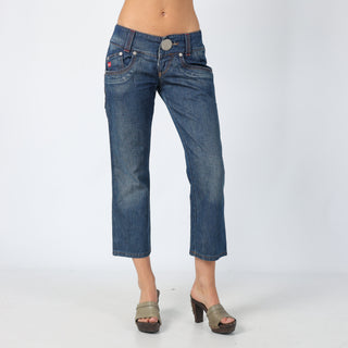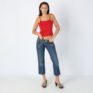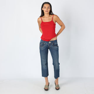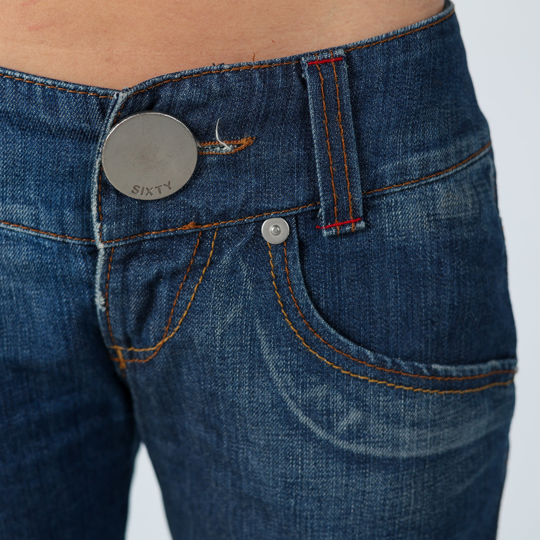 Navy Blue 90s Miss Sixty 3/4 Jeans Statement Button Super Cool It-Girl (6)