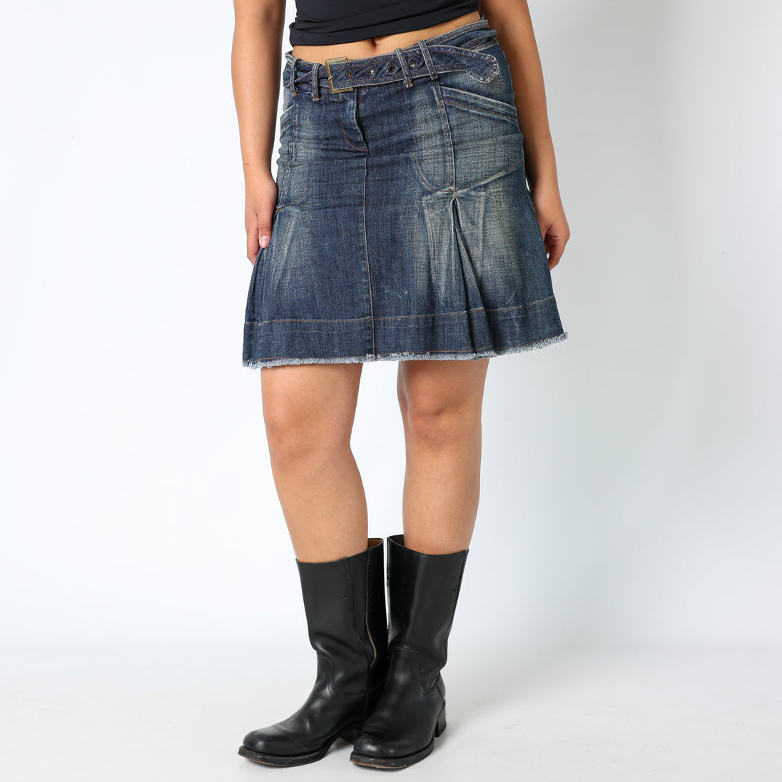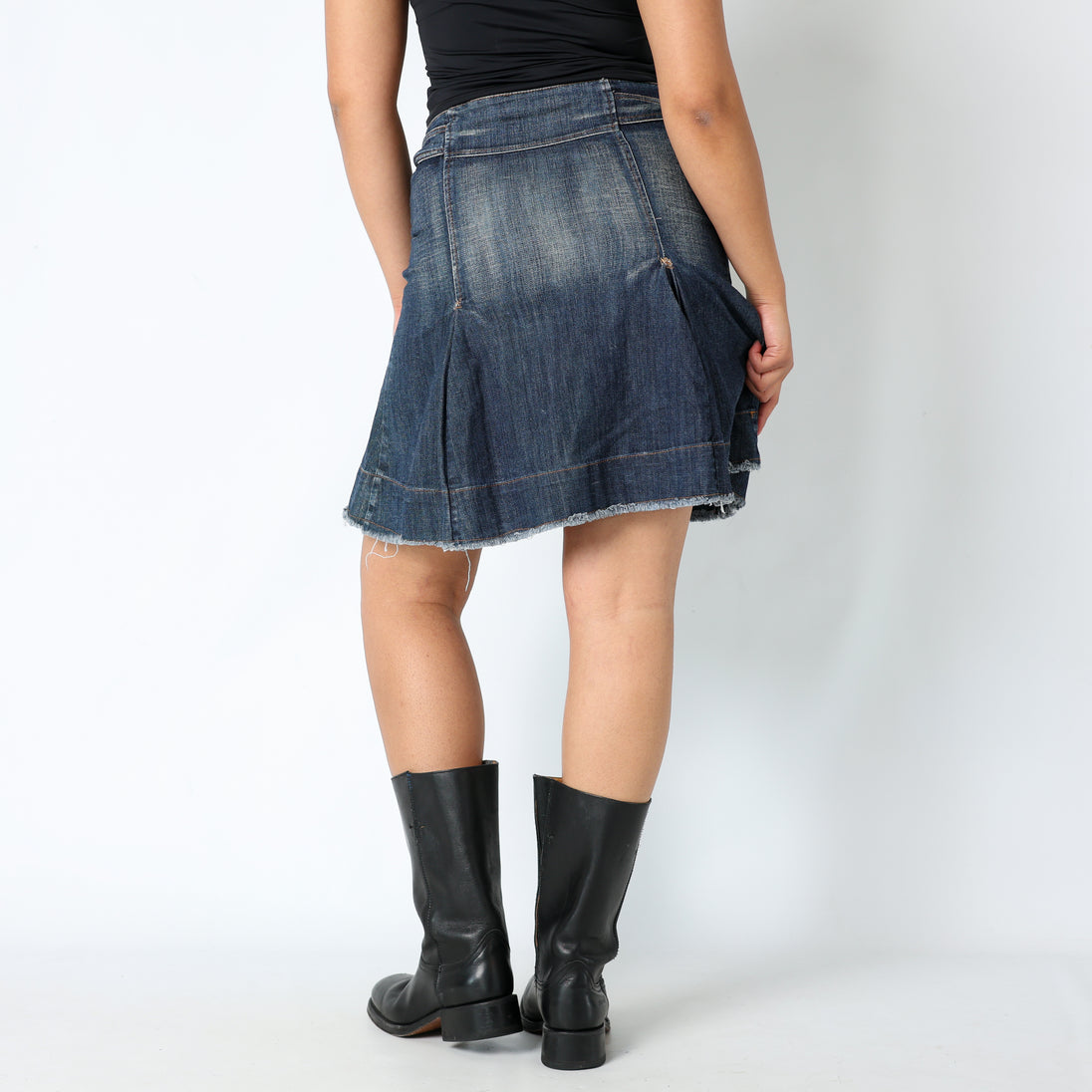 Navy Blue 90s Rinascimento Denim Midi Skirt Pleated Wash (S)