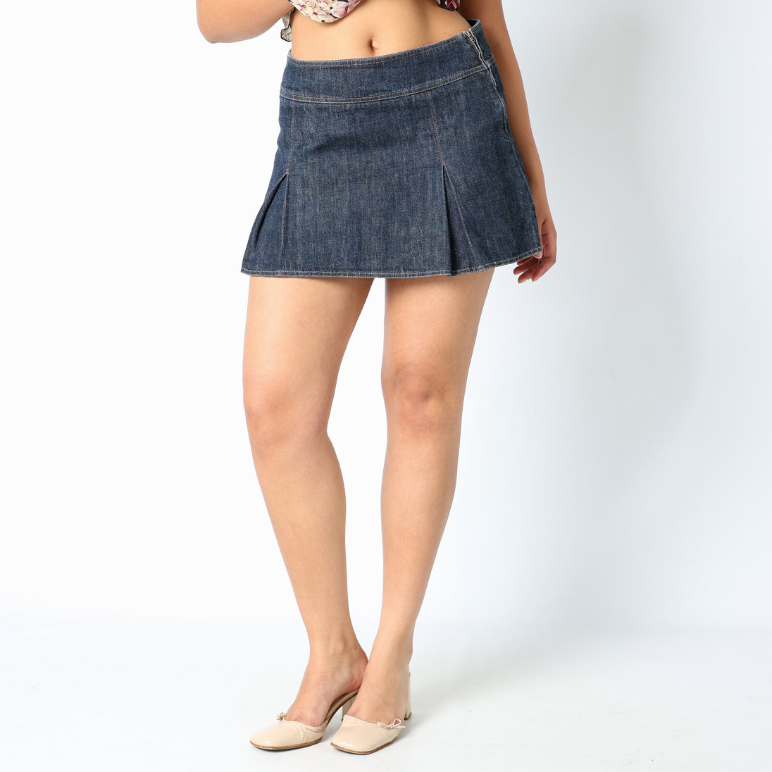 Navy Blue 90s Sisley Denim Mini Skirt Pleated (M)