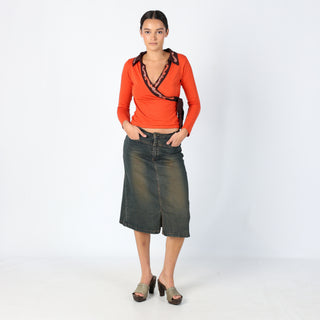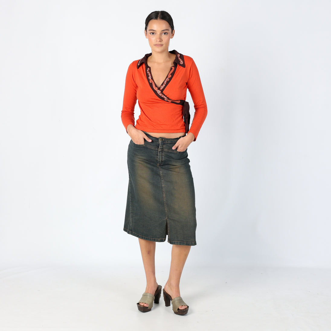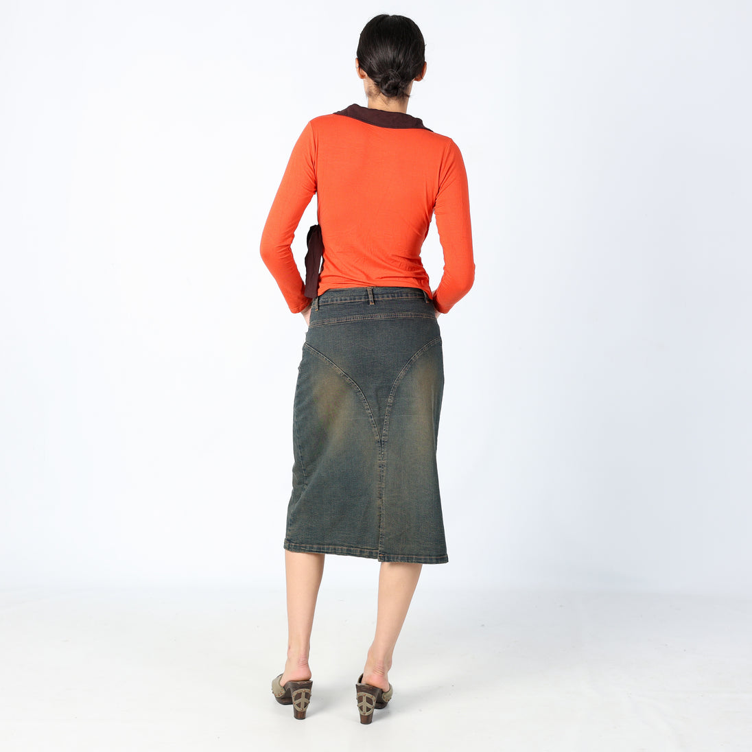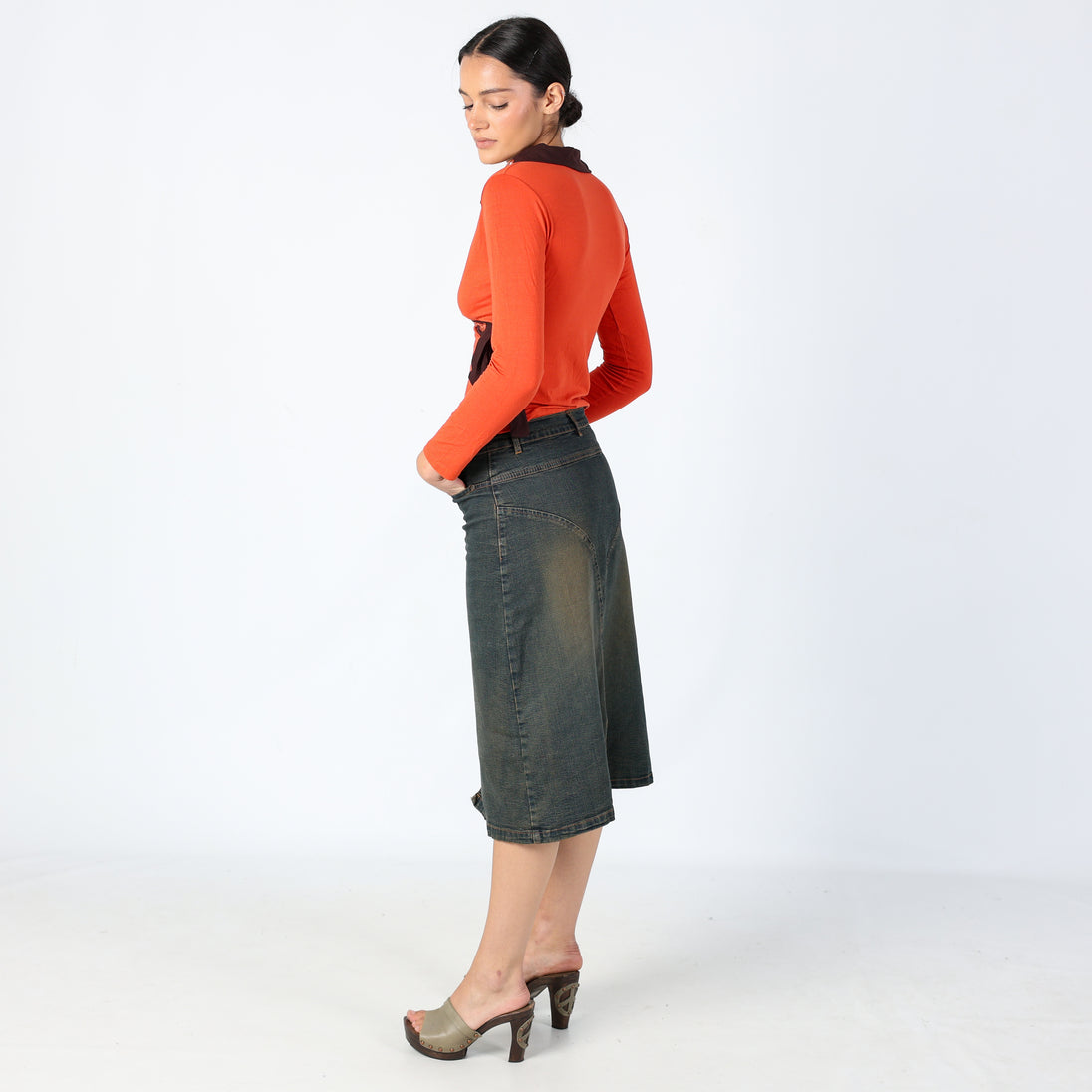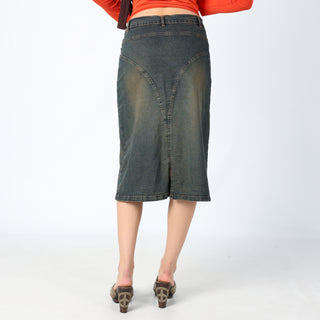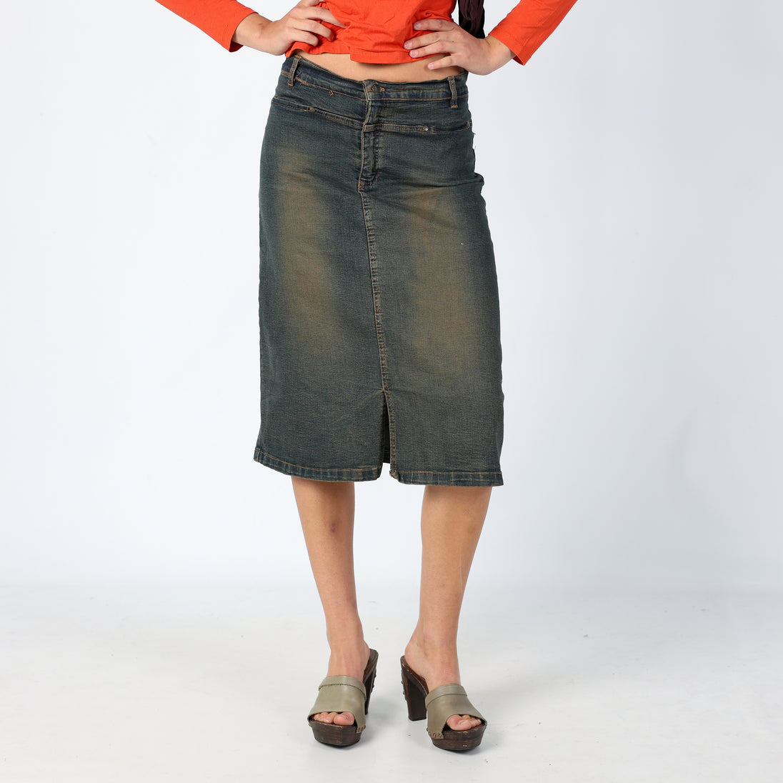 Navy Blue y2ks Asia Jeans Denim Midi Skirt Split Hem, Grunge Y2k (L)