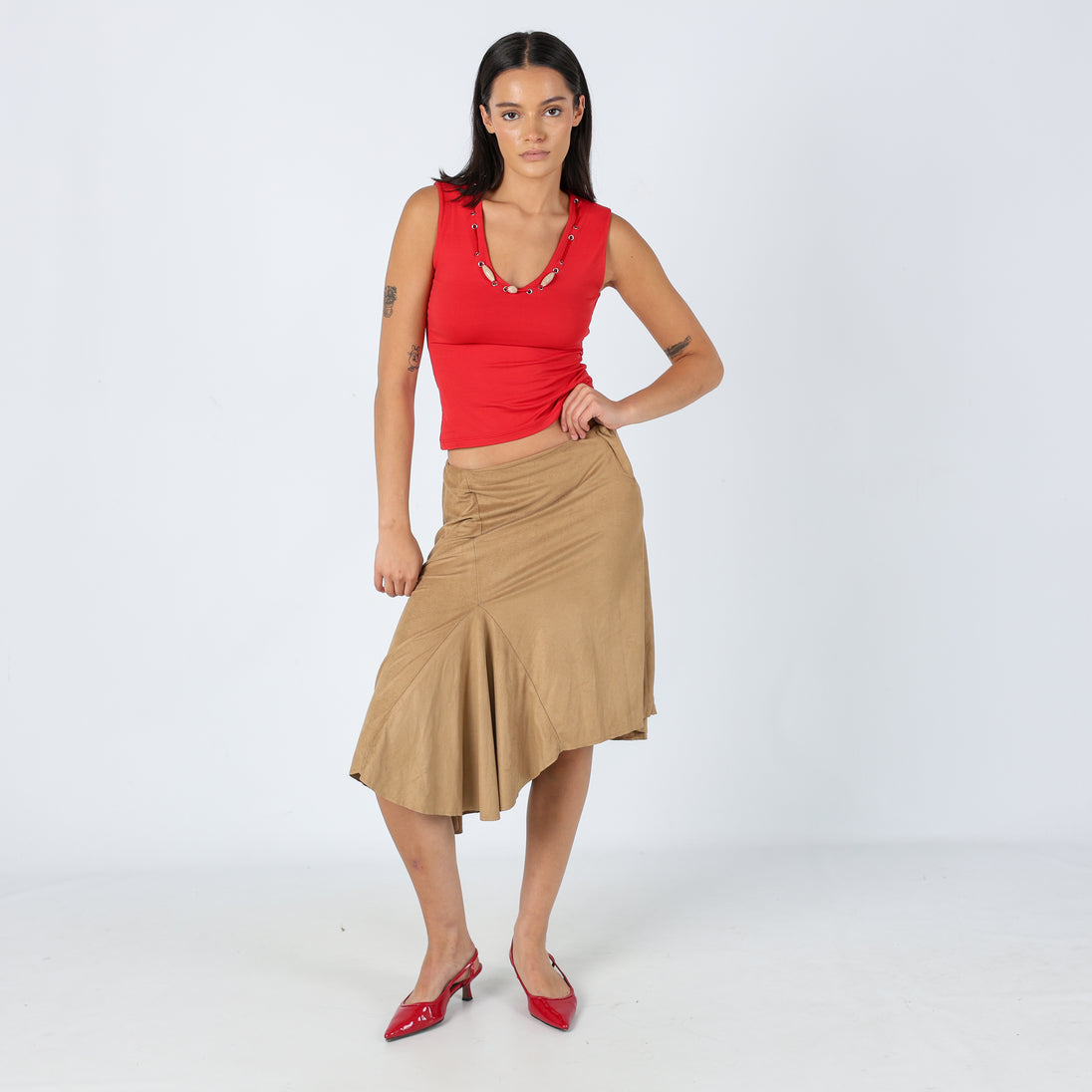Tan y2ks GUESS Jeans Woven Midi Skirt Floaty Suede (8)