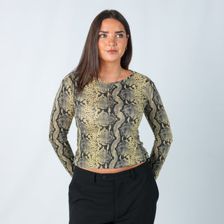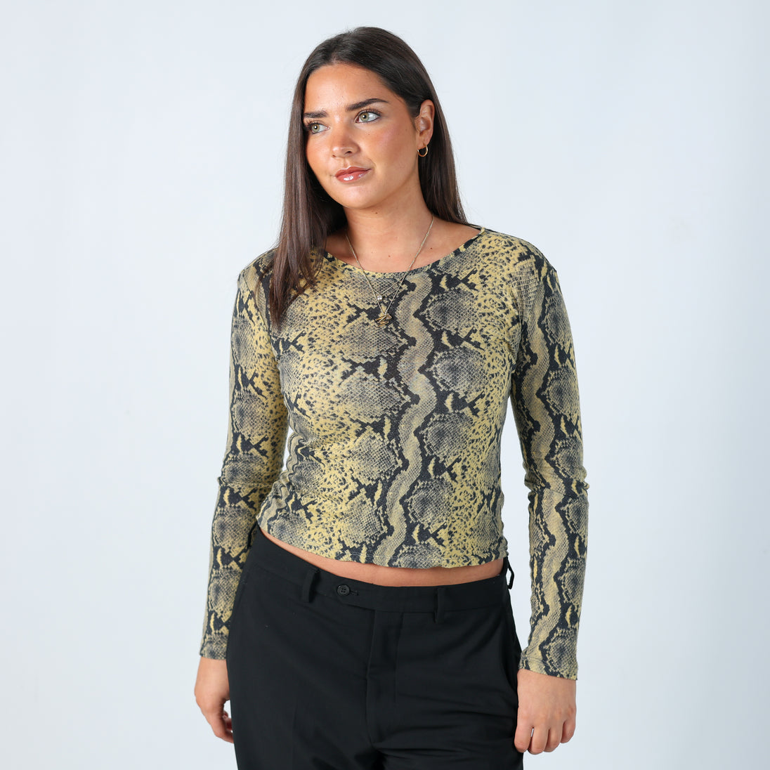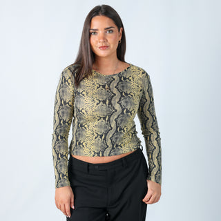 Yellow y2ks GUESS Jeans Long Sleeve Top Snakeskin (S)
