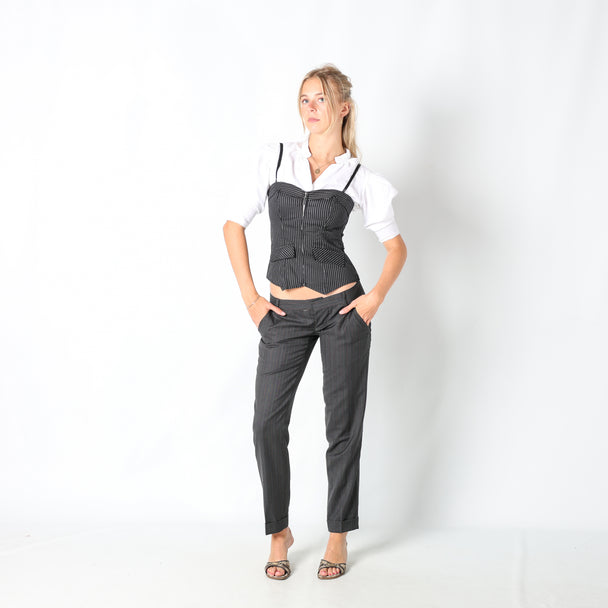 Charcoal Grey 90s DSQUARED Formal Trousers Orange Pinstripe (6)