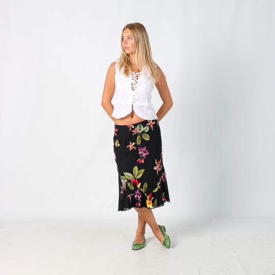 Black y2ks Sixth Sense Woven Midi Skirt Floral (M)