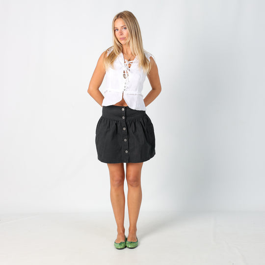 Black 90s United Colours of Benetton Woven Mini Skirt (M)