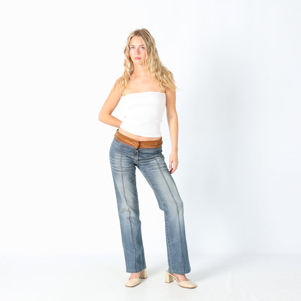 Light Blue 90s Patrizia Pepe Flare Jeans Detatchable Waistband (S)