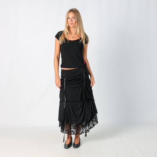 Black y2ks Francesca Mercuriali Woven Maxi Skirt (M)
