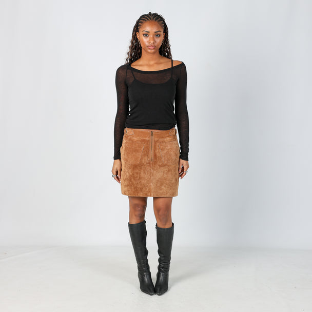 Brown y2ks Vera Pelle Leather Midi Skirt (M)