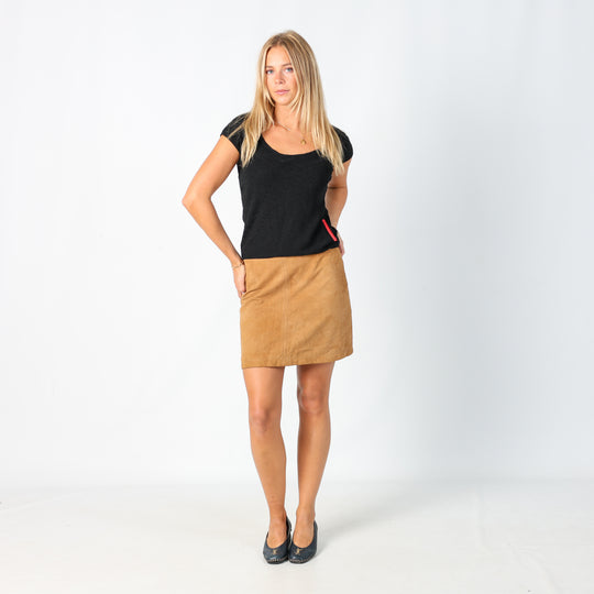 Tan 90s Mazzi Effetto Woven Midi Skirt (S)
