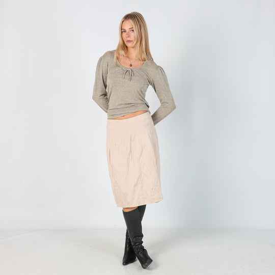 Beige y2ks MaxMara Woven Midi Skirt (S)