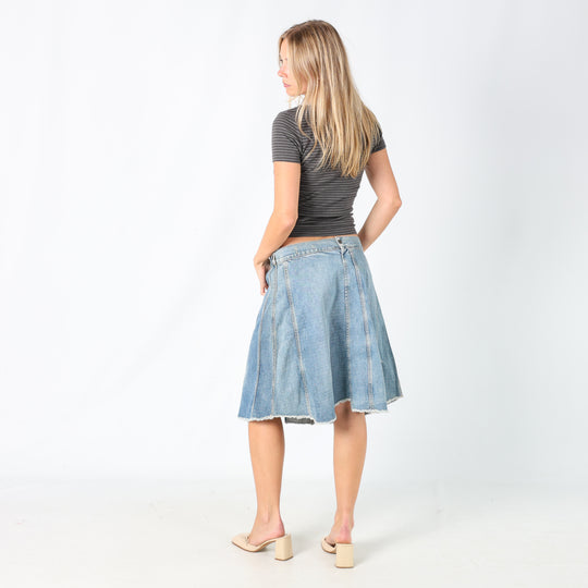 Light Blue 90s United Colours of Benetton Denim Midi Skirt (M)