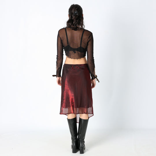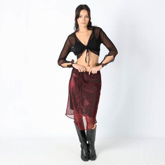 Burgundy Red 90s Unbranded Mesh Midi Skirt Metallic Mesh (6)