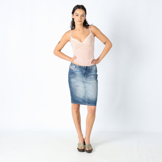 Blue 90s Diesel Denim Midi Skirt Wash Detail Pocket (6)