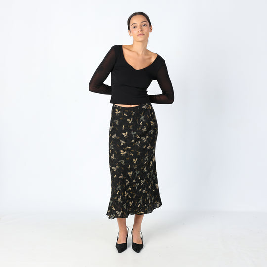 Black y2ks Calvin Klein Printed Maxi Skirt Floral Floaty Maxi (6)