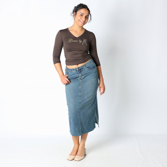 Blue 90s Ingley Jeans Denim Midi Skirt Pencil Shape (M)