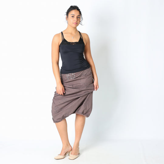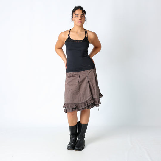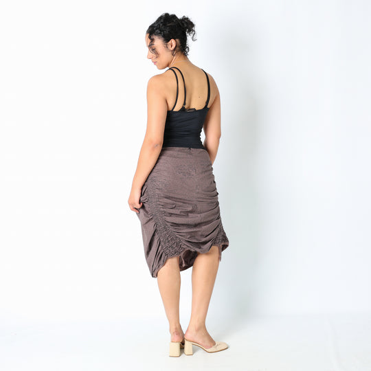 Brown 90s Cop Copine Woven Midi Skirt Detail on Front Rusced (S)